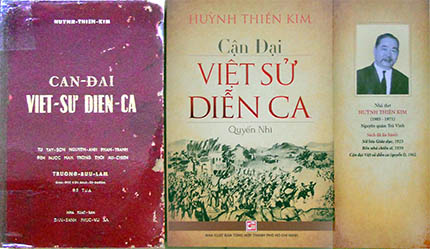 Đôi điều về cuốn CẬN ĐẠI VIỆT SỬ DIỄN CA Quyển Nhì của Huỳnh Thiên Kim Nhận lời đánh máy và dàn trang cuốn “CẬN ĐẠI VIỆT SỬ DIỄN CA QUYỂN II” để xin giấy phép, theo đúng như mẫu là Cận Đại Việt Sử Diễn Ca quyển I, tôi đã thực hiện tốt yêu cầu ấy. Tuy nhiên trong quá trình đánh máy - dàn trang, có nhiều vấn nạn như: cột mốc lịch sử chưa rõ ràng, tên của nhân vật chưa thống nhất và nhiều từ tiếng Pháp mờ, những chữ viết tay khó đọc… tôi đã phải tra cứu lại những tài liệu để lại của tác giả, và lên cả trên internet để tìm lại những tài liệu cũ từ thời Pháp thuộc,… Ấy thế mà cũng không thể bổ sung đủ những chỗ còn thiếu, cuối cùng phải nhờ đến Dịch giả Vũ Anh Tuấn (người đã tuyên bố gác bút với các ngoại ngữ chỉ để dành cho mẹ Âu Cơ), ông đã giúp cho tên nhân vật, và những chữ bằng tiếng Pháp thêm phần chính xác. Và vì đây là một cuốn tóm lại những sự việc lịch sử nên sự chính xác phải thật rõ ràng, không làm cho qua được; nên sau khi ra được cuốn mẫu, cô Huỳnh Thiên Kim Bội - con gái cụ Huỳnh Thiên Kim - đã xem và chỉnh sửa lại nhiều lần trước khi đến với Nhà xuất bản Tổng hợp Tp. Hồ Chí Minh. Thấm thoát gần một năm trôi qua chờ “Duyệt”, tôi tiếp tục đánh máy và dàn trang cuốn “Điều kỳ diệu của tình yêu” của Huỳnh Thiên Kim Bội. May thay cuốn này lại được ra đời trước (NXB Tổng hợp Tp. HCM, quý III 2015). Cũng nhờ cuốn này cô Kim Bội đã gặp gỡ và giao lưu với nhà văn Nguyễn Long Trảo - tác giả cuốn hồi ký “Khi tổ quốc gọi tên mình” (NXB Trẻ, Quý II 2015), cô cũng được giới thiệu với nhà văn Vũ Hạnh và ông đã nhận lời viết bài “Vài cảm nghĩ nhỏ về một tác phẩm lớn” sau “Lời giới thiệu” của Nhà xuất bản để rồi cuốn Cận Đại Việt Sử Diễn Ca II, như trên một dòng sông bị tắc nay được khơi thông mà ra đời vào Quý I/2016. Thời điểm sách “về” là những ngày cuối năm đang chuẩn bị đón xuân (28 tết). Niềm vui tăng thêm niềm vui vì người ta chơi mai chơi đào còn mình chơi… sách. Cuốn I nằm cận kề cuốn II sau 54 năm lẻ loi, cô độc. Cuốn I đóng bìa cứng đỏ mạ chữ vàng, còn cuốn II vì ra đời sau - hiện đại hơn - nhưng vẫn giữ được tính cách của lịch sử nên mang màu vàng ấm, chữ nhũ màu đỏ và tấm hình bìa in Sự nổi dậy của nông dân chống lại thực dân Pháp do NXB Tổng Hợp Tp. HCM phát hành quý I/2016. Cuốn sách này khổ 16x24 cm và dày 464 trang được viết theo thể thơ lục bát, nêu những sự kiện lịch sử từ Đệ Nhất thế giới hậu chiến (1918) trải qua Cách mạng mùa thu Ất Dậu đến Nam bộ kháng chiến mở màn (1945). Các diễn tiến của lịch sử được đúc kết thành 4.290 câu thơ dễ đọc và dễ thuộc, không khô khan như nhiều người lầm tưởng về lịch sử. Cũng như quyển I, sau mỗi đoạn lại có một vài thi vịnh. Có tất cả 34 thi vịnh, đa số viết về các nhân vật: Phạm Hồng Thái, Phan Bội Châu, Nguyễn Thế Truyền, Dương Văn Giáo, Phan Châu Trinh, Bùi Quang Chiêu, Cao Văn Chánh, Hà Trì Bửu Đình, Thi sĩ Tagore, Cô Bắc, Cô Giang, Đào Năm Phỉ, Tổng trưởng Reynaud, Nguyễn Ái Quốc, Nguyễn Văn Vĩnh, Nam Phương Hoàng Hậu, Nguyễn An Ninh, Lê Văn Kim, Đức thầy Huỳnh Phú Sổ, Phạm Quỳnh, Tạ Thu Thâu, Trần Trọng Kim, Nguyễn Văn Sâm, Phạm Văn Bạch, Bảo Đại, Bs. Nguyễn Thị Ngọc Sương, Phan Văn Hùm, Nguyễn Phan Long, Huỳnh Thiện Lộc, Ca Văn Thỉnh. Ngoài ra còn có các thi vịnh nói về các vấn đề như: Phong trào tẩy chay khách trú Viếng cụ Phan nghe lời dạy dỗ Việt Nam Quốc Dân Đảng Kinh tế khủng hoảng Xin trích dẫn ít câu trong thi vịnh: - Ca tụng Hoàng hậu Nguyễn Thị Lan xinh tươi, học giỏi, đàn hay… Thiếu nữ nhà ai sắc mỹ miều Thoạt trông kim thượng động lòng yêu Thướt tha bóng liễu thành Đà Lạt Mê mẩn hồn vua chốn đế triều… Thi vịnh Mariette Nguyễn Thị Lan Nam Phương Hoàng Hậu (t.262) - Ca tụng Nữ Bác sĩ Nguyễn Thị Ngọc Sương Yểu điệu thanh tân vẻ mặn mà Tâm hồn ái quốc chí cao xa Y khoa bác sĩ vin cành quế Phụ nữ Tiền Phong bén gốc hoa… Thi vịnh Nữ Bs. Nguyễn Thị Ngọc Sương (t.430) - Hai chị em Nguyễn Thị Bắc và Nguyễn Thị Giang được ví như Trưng Trắc và Trưng Nhị Đánh Tàu Trắc Nhị chí hào hùng Diệt Pháp Bắc Giang hận nấu nung… Thi vịnh Cô Bắc Cô Giang (t.180) - Lời chửi cũng được đưa vào thơ khi tẩy chay khách trú ở Nam kỳ Á xẩm pha thêm chút sữa bò Tiểu na ná nị!(1) Ngộ không cho… Thi vịnh Phong trào tẩy chay khách trú (t.30) - Nói về cuộc đời Cụ Phan Bội Châu: Dìu dắt thanh niên vượt bể khơi Gây triều cách mạng tiến theo đời … Thơ vang Bến Ngự, hồn vong quốc Thúc giục luyện trui đá vá trời. Thi vịnh Phan Bội Châu (t.60) - Cuộc đời Cụ Phan Châu Trinh Quyết gánh giang san lúc đảo điên Duy Tân Cách Mạng chí tuyên truyền Giảng văn Nghĩa thục dân hưng khởi Gây loạn đồng bào giặc ngửa nghiêng… Thi vịnh Phan Châu Trinh (t.89) - Nói về Nguy