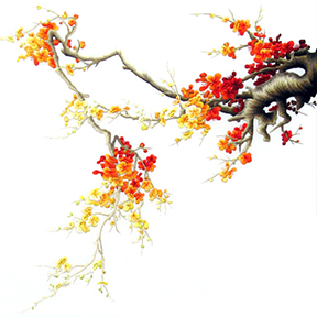Every year when the peach trees were blossoming The old scholar appeared again, displaying Red paper and black ink by the road side On the pavement crowded with passers-by